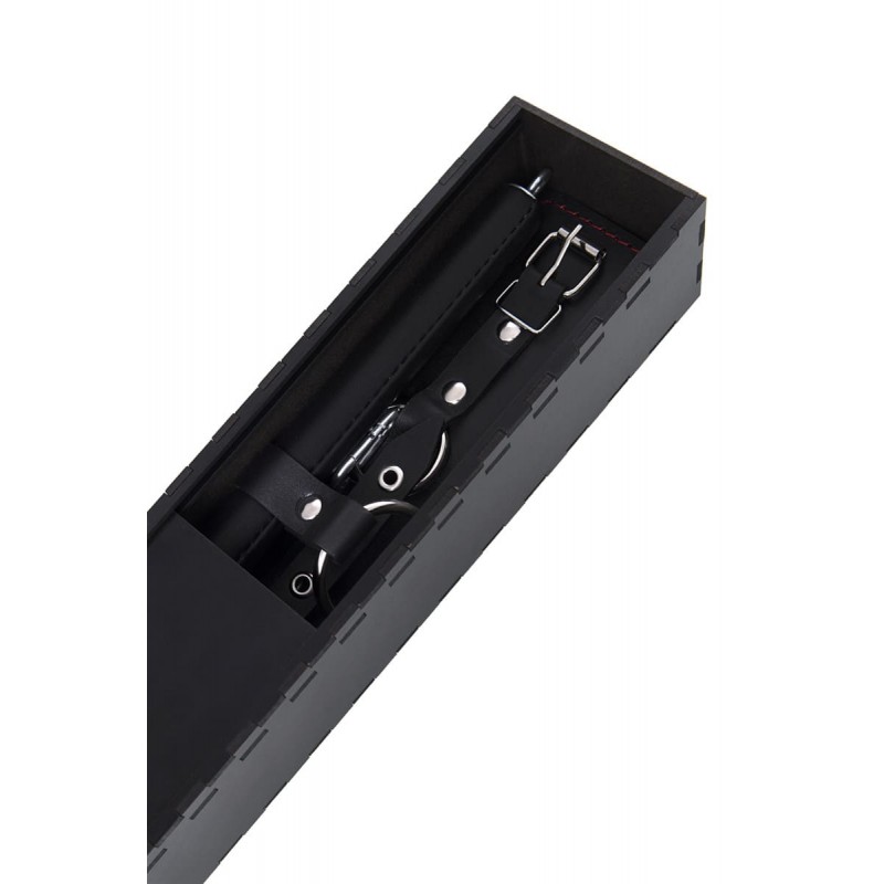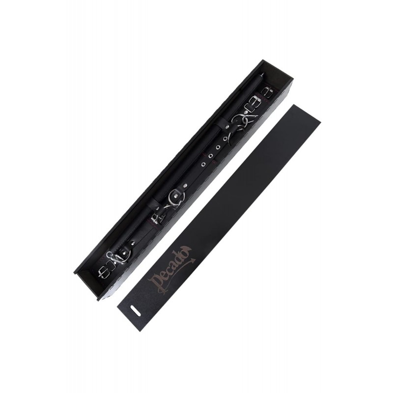 Набор для бандажа состоит из большой распорки с четырьмя точками крепления и пары оков и наручников с контрастной строчкой красного цвета, всё это в фирменной деревянной коробке Pecado BDSM. С этим набором расширить возможности и способы фиксации проще простого! Варианты и комбинации ограничения свободы партнера зависят от вашей фантазии и желаний. Распорка позволяет зафиксировать ноги и руки партнера в широко разведенной позиции. Частичное обездвиживание и невозможность двигать руками или ногами дают вам полную власть над партнером – взрослые игры для взрослых. Кольцо посередине распорки позволяет использовать дополнительные аксессуары, либо приковать партнера к кровати или другому предмету и экспериментировать с позициями и ощущениями.