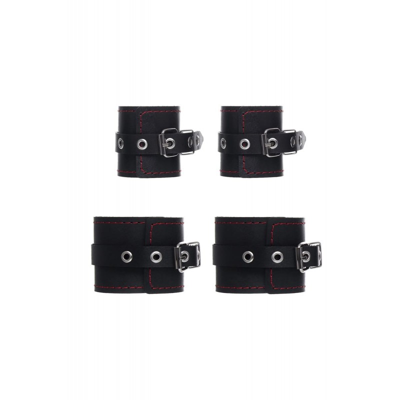 Ширина оков - 6,5 см, длина оков - 25 см. Ширина наручников - 6,5 см, длина наручников - 20 см Длина распорки - 50 см. Четыре точки фиксации - два кольца и четыре карабина.