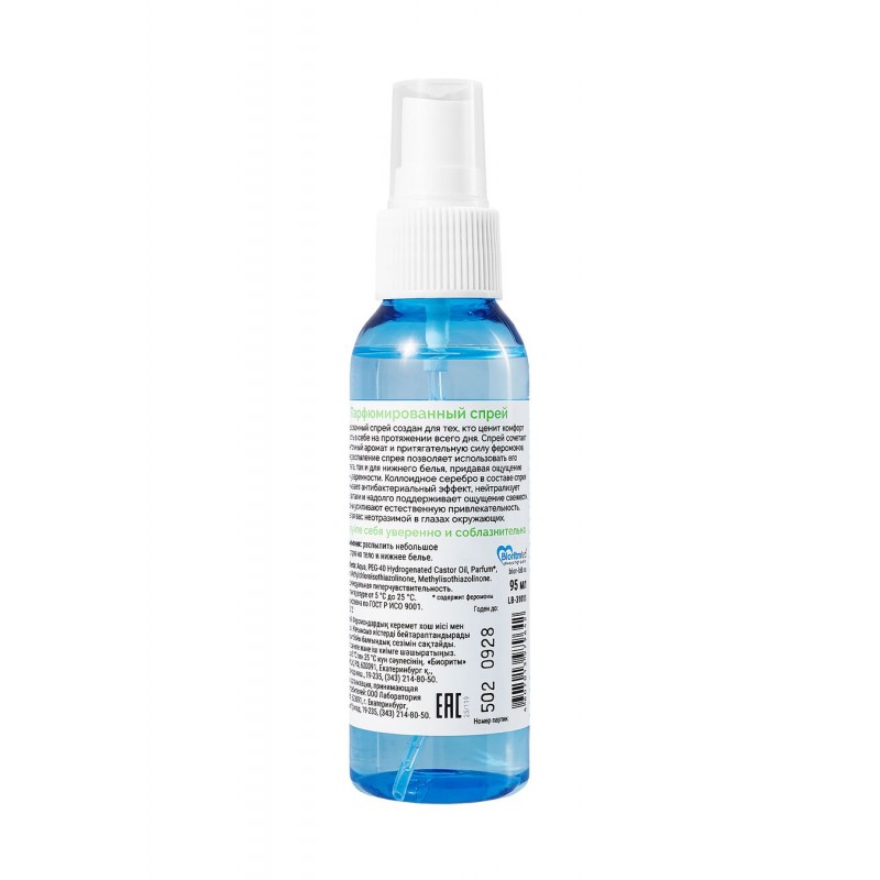 Способ применения: распылить небольшое количество спрея на тело и нижнее белье. Состав Aqua, PEG-40 Hydrogenated Castor Oil, Parfum*, Colloidal Silver, Methylchloroisothiazolinone, Methylisothiazolinone.