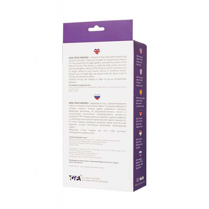 ВИБРАТОР С КЛИТОРАЛЬНЫМ СТИМУЛЯТОРОМ TOYFA A-TOYS , TPR, ФИОЛЕТОВЫЙ, 22,5 СМ