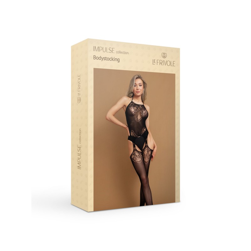 Черный боди-комбинезон с имитацией чулок (IMPULSE) S/XXL