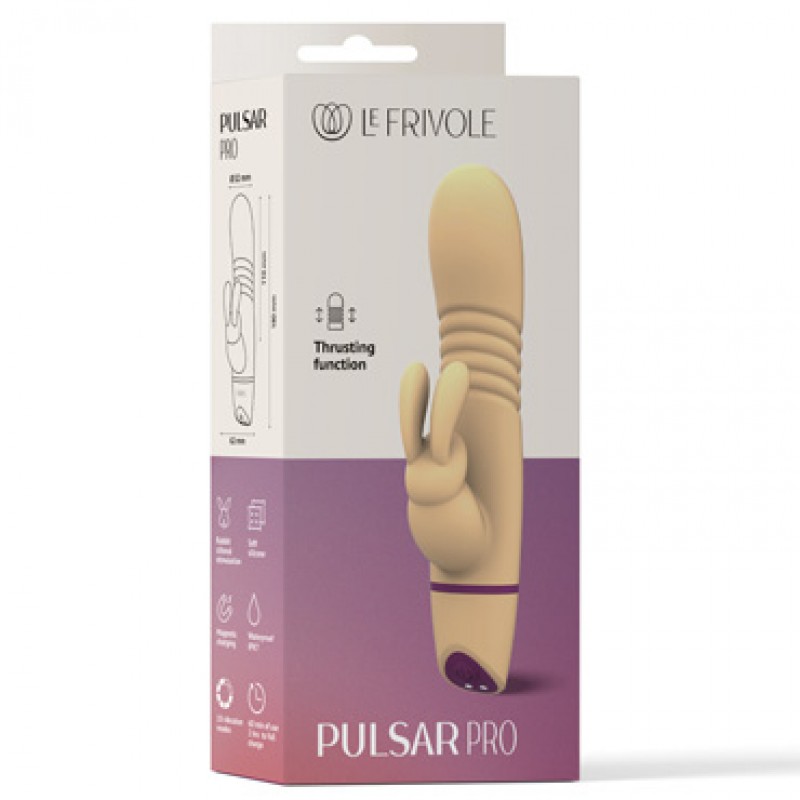 Pulsar Pro — Вибратор-кролик с функцией поступательных движений из коллекции Sensora создан для тех, кто ищет мощные и реалистичные ощущения. Его уникальная технология имитирует естественные ритмичные движения, создавая эффект глубокой и интенсивной стимуляции, а изогнутая форма точно воздействует на точку G для максимального удовольствия. Ушки и носик кролика добавляют мощную клиторальную стимуляцию благодаря высокочастотным вибрациям.